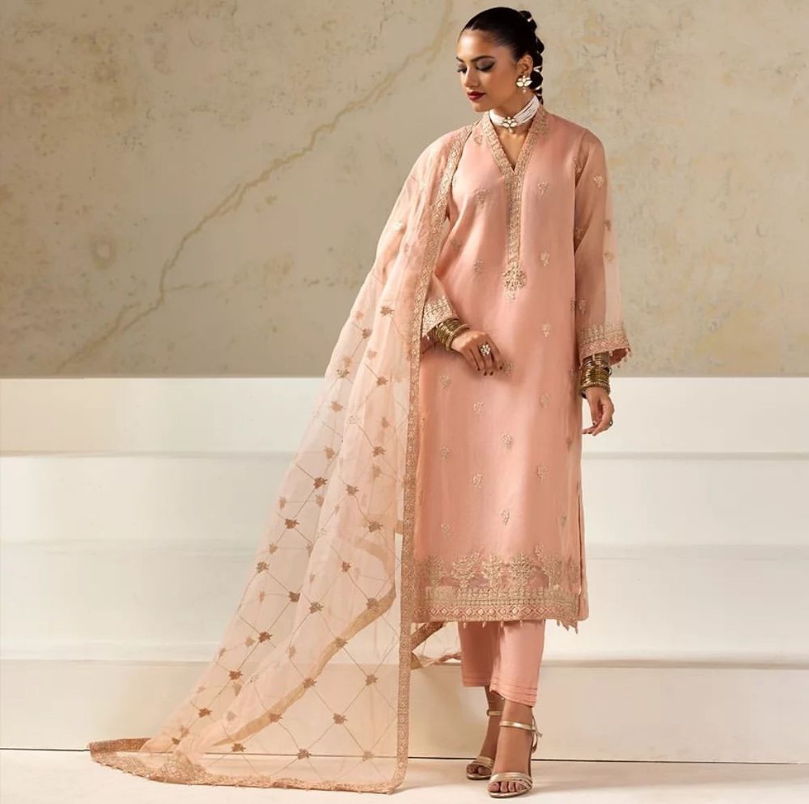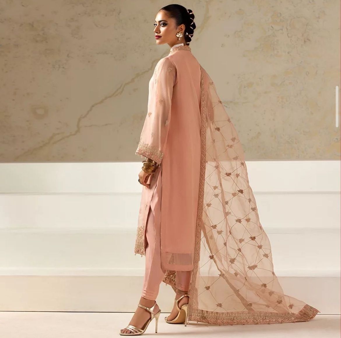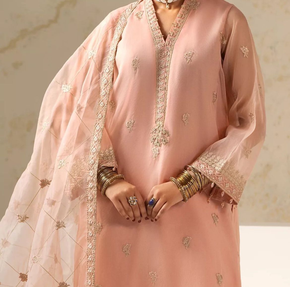 3-PC EMBROIDERED ORGANZA SHIRT WITH ORGANZA DUPATTA AND TROUSER
