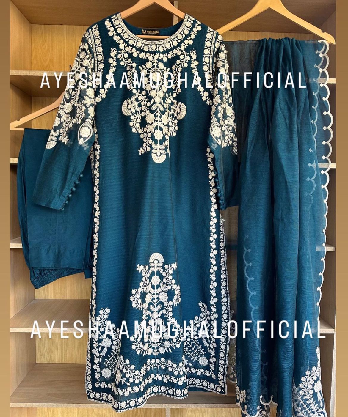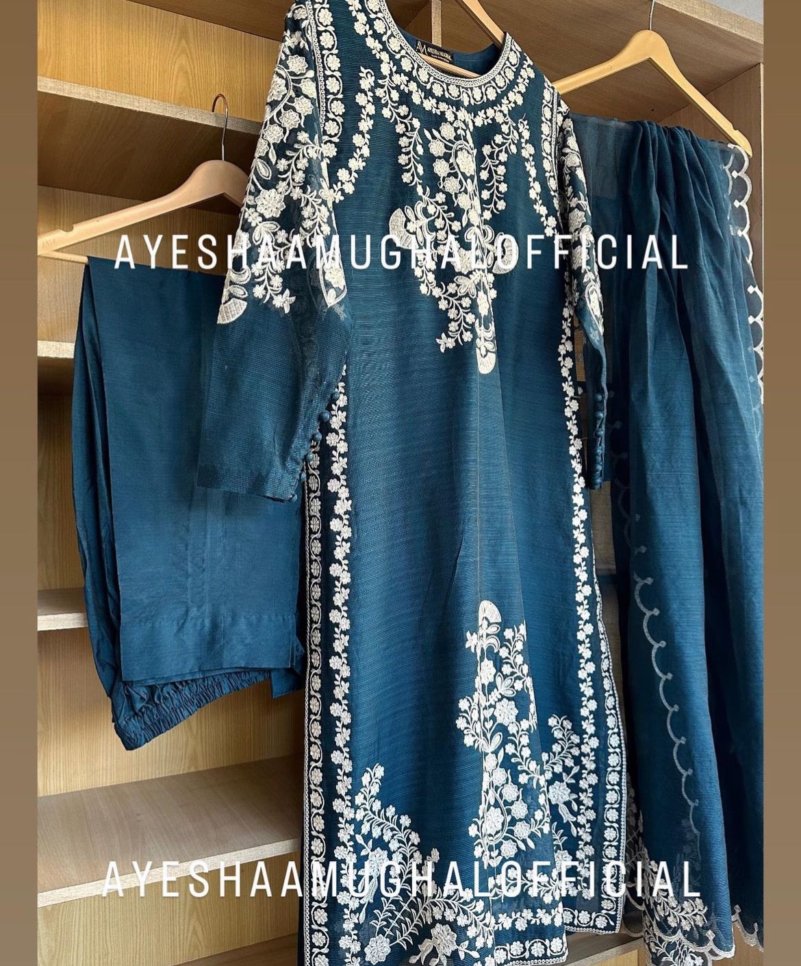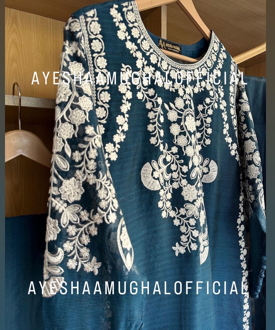 PURE KARANDI NET DUPPATA | LONG SHIRT WITH THIN BEAUTIFUL EMBROIDERED PATTERN KNOTTED SIDED PAIRED WITH KHADI SILK CIGARETTE PANTS