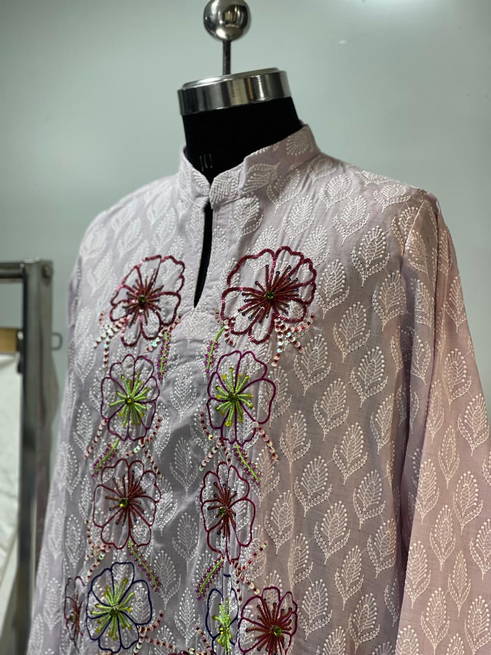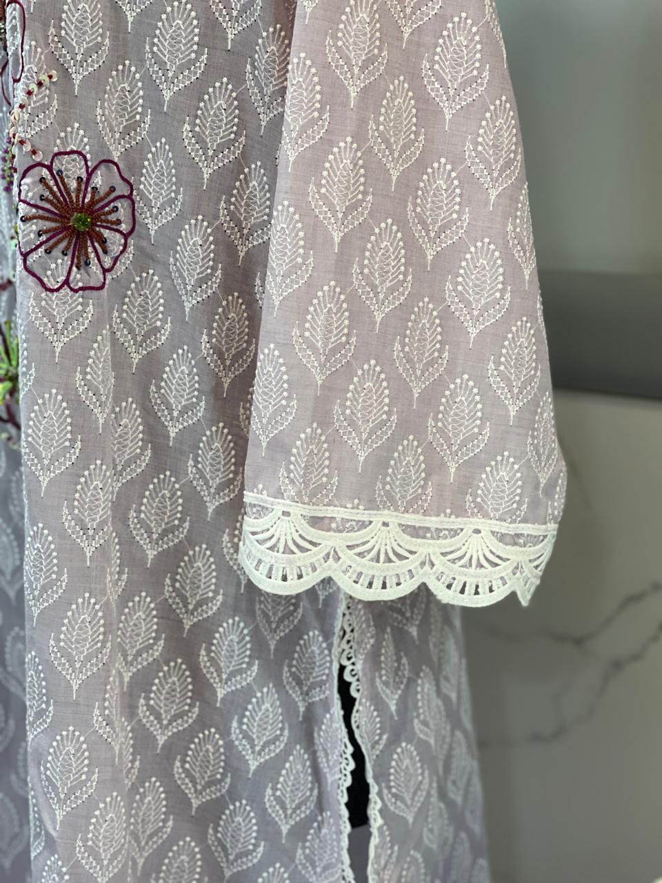 ELLA’NOOR 2 PC SET WHICH IS EMBORIDERED WITH HANDWORK ON THE FRONT SIDE WITH CRYSTAL DETAILING AND SLEEVES WITH LASE