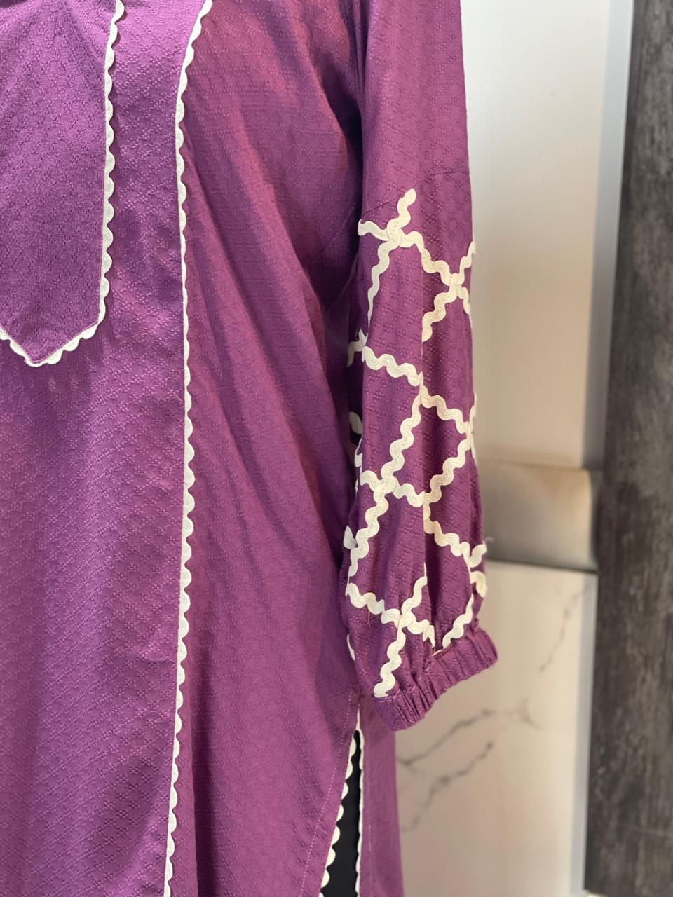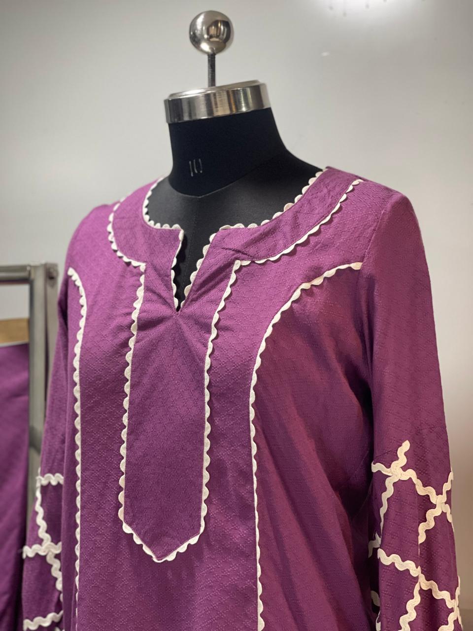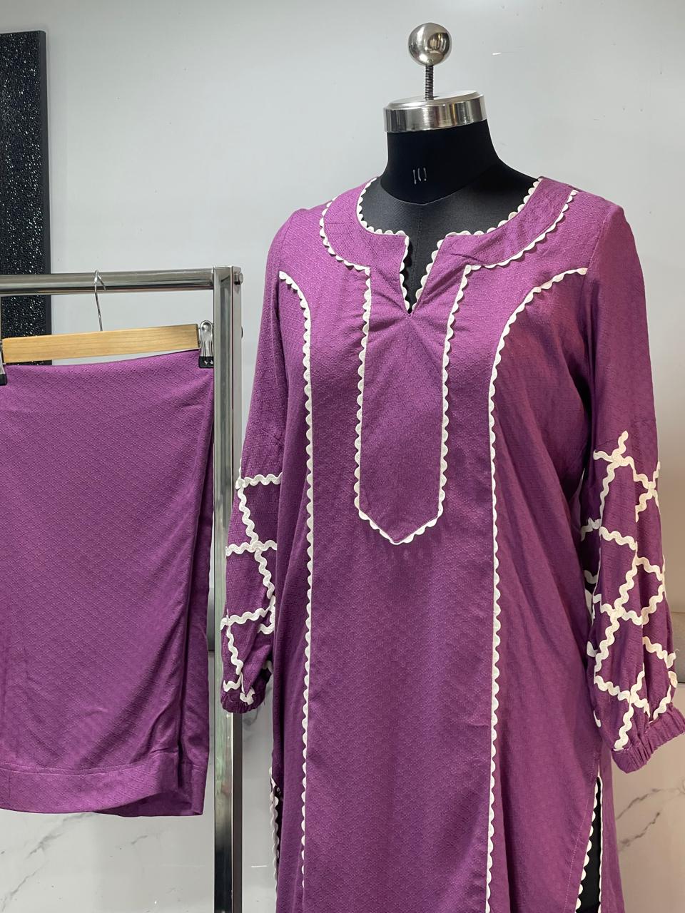 ELLA NOOR 2 PC AS YOU CAN SEE BEAUTIFUL LASE IN THE FRONT SIDE OF KURTI WITH BALLON STYLE SELLVES