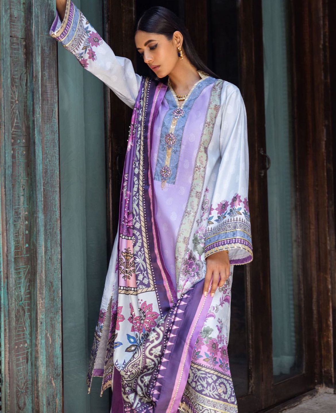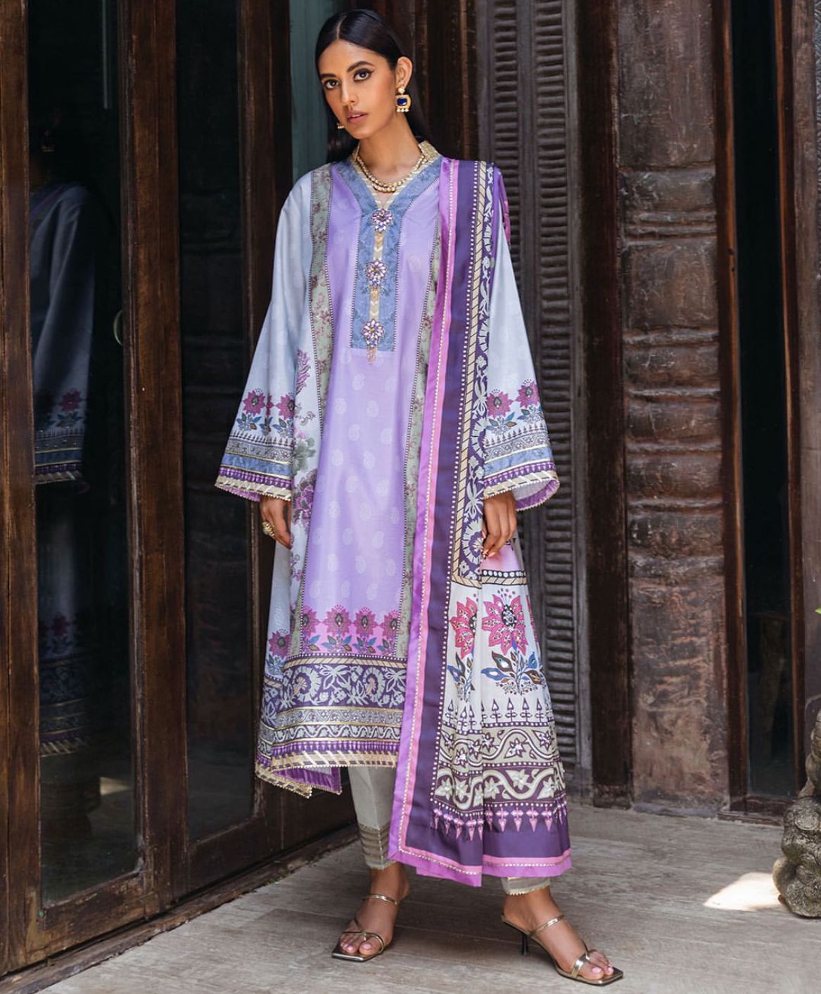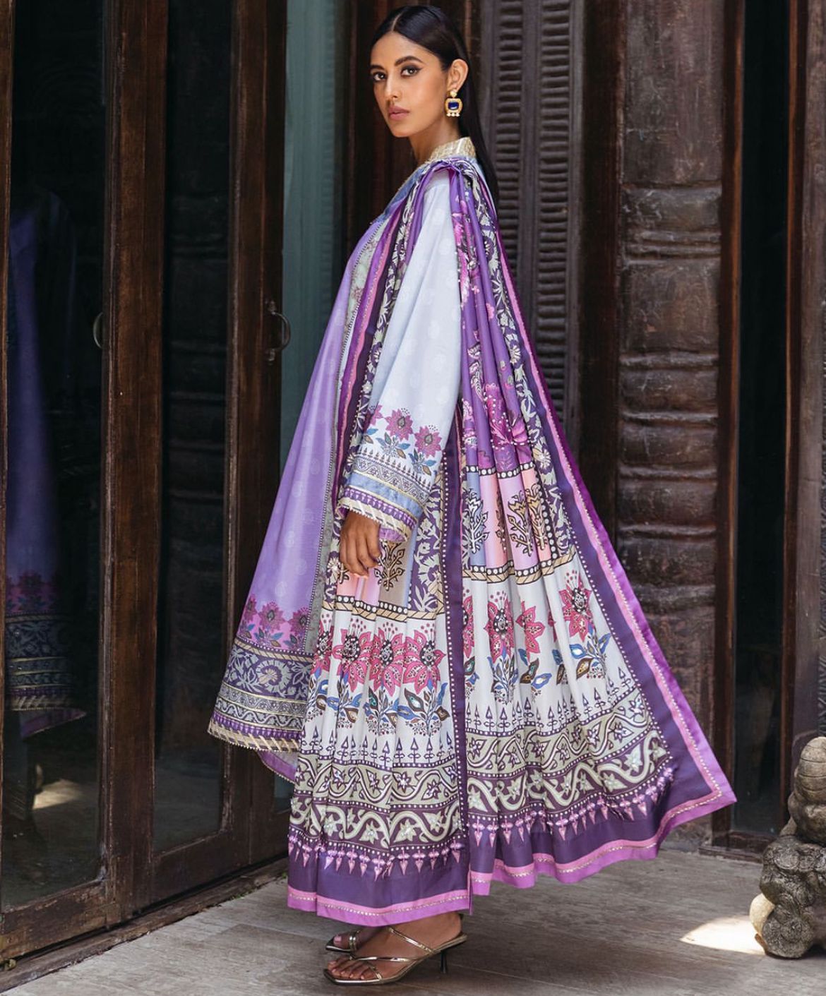Viola from the Nirvana collection—a masterpiece crafted on luxurious raw silk with delicate embellishments that elevate its charm. The vibrant printed design adds a touch of modern elegance, while the flowing silk dupatta completes the ensemble with effortless grace. Viola is the perfect blend of tradition and sophistication, designed for those who appreciate timeless beauty.
