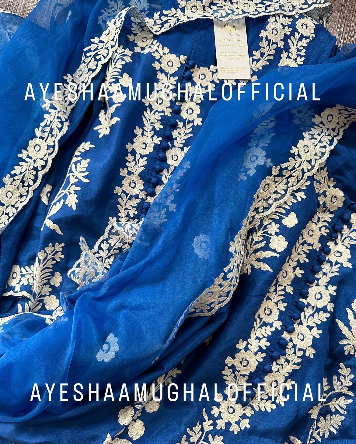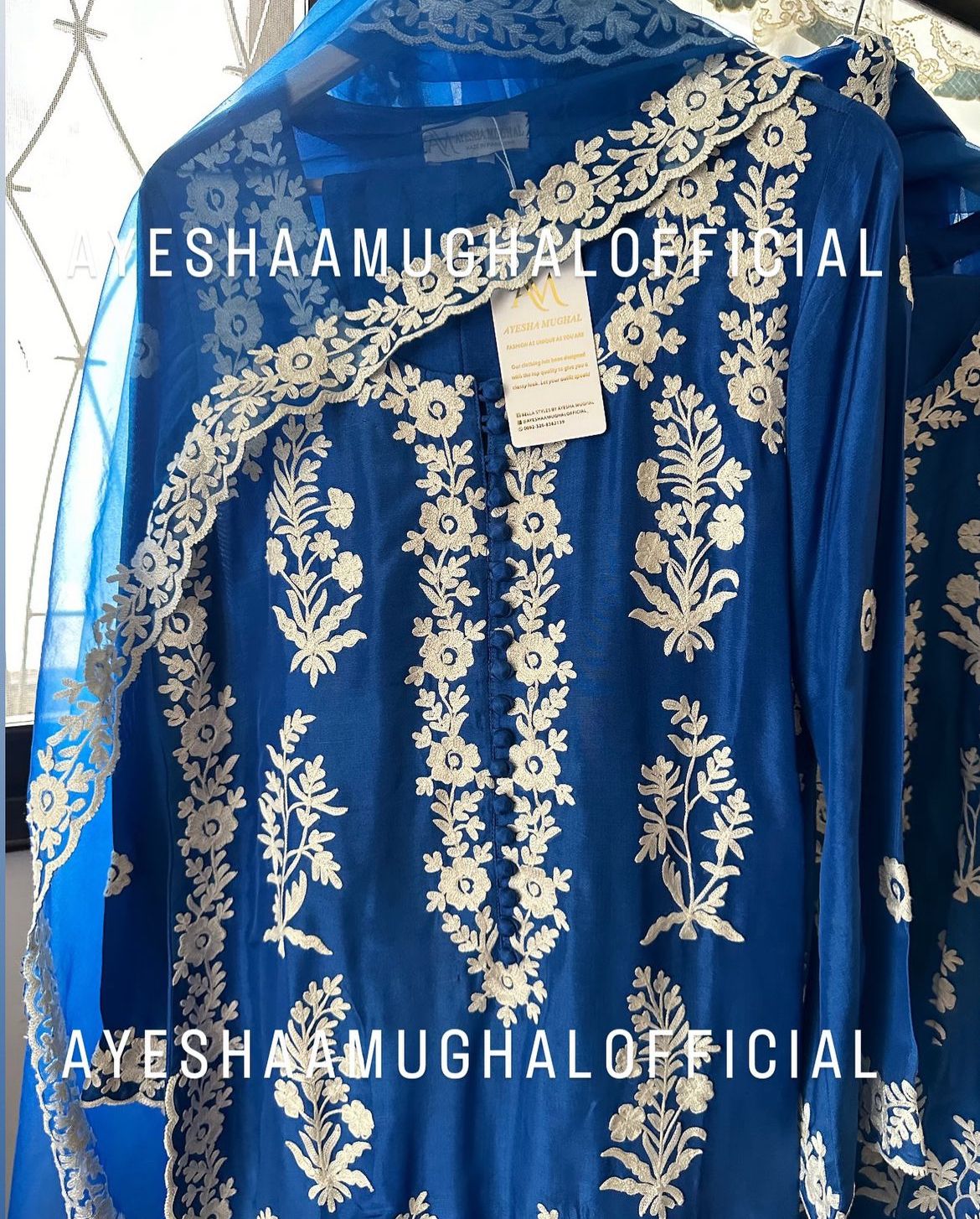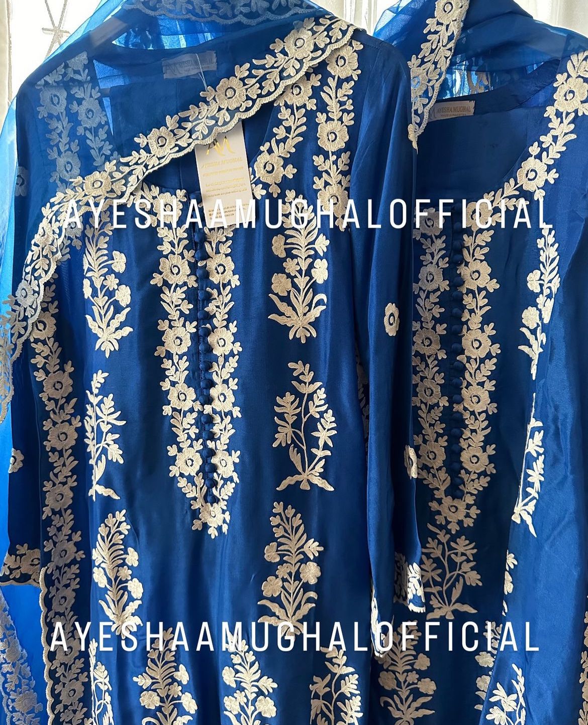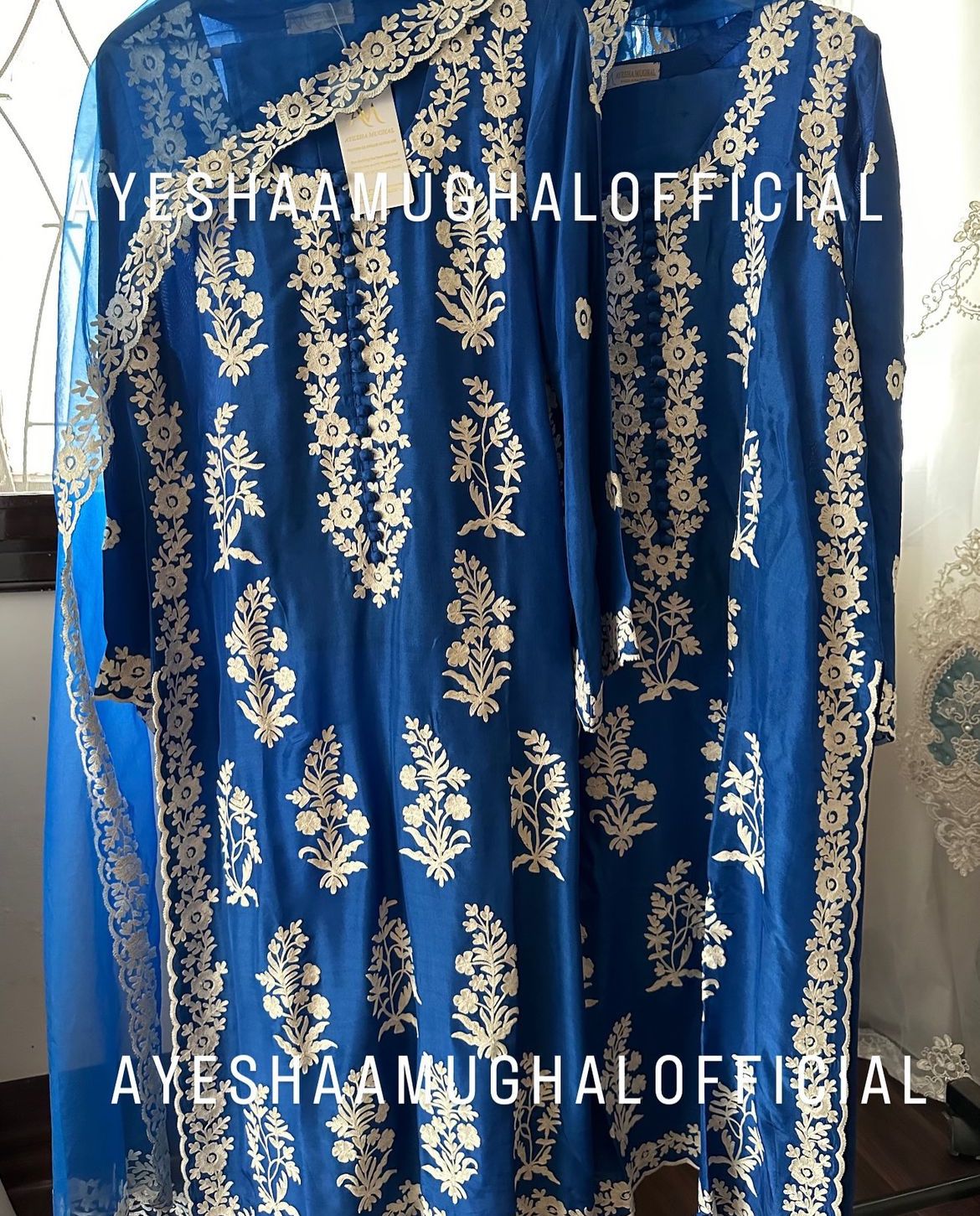 Urooj | New Edit Tussar silk long shirt; Ari work, paired with pants and medium organza duppata